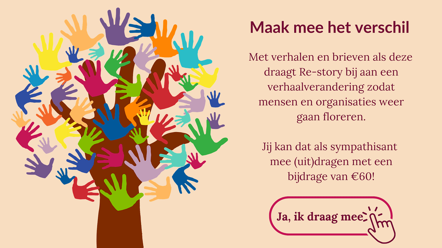 We kunnen, Hannah Arendt indachtig elk âmoment opnieuw beslissen in wat voor wereld we willen leven. Met verhalen en brieven als deze draagt Re-story bij aan een verhaalverandering zodat mensen en organisaties weer gaan floreren. Wil je dat mee dragen âŠ
