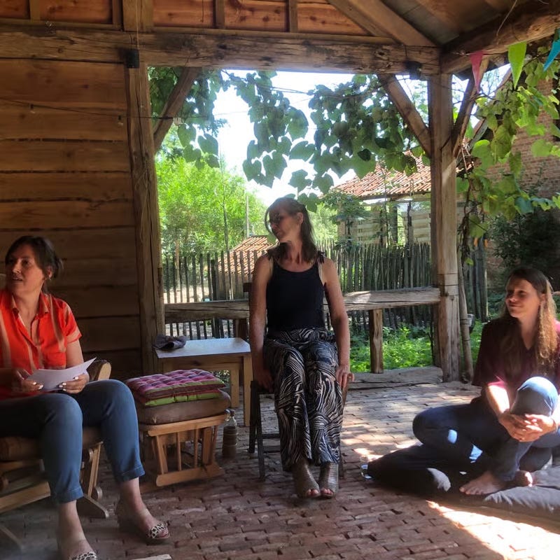 Foto. Restories on the road vlnr: Annemie Vrints, Elke Leyman & Sara Borremans