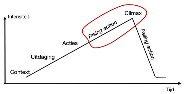 Ik ben me gaan verdiepen in het verschil tussen Oosterse en Westerse vertelwijzen. Het Westen volgt vaak de structuur: context – conflict – hindernissen – acties – climax – oplossing. Het verhaal draait om een duidelijk probleem, een antagonist en een heldhaftige oplossing. Het probleem drijft het verhaal.