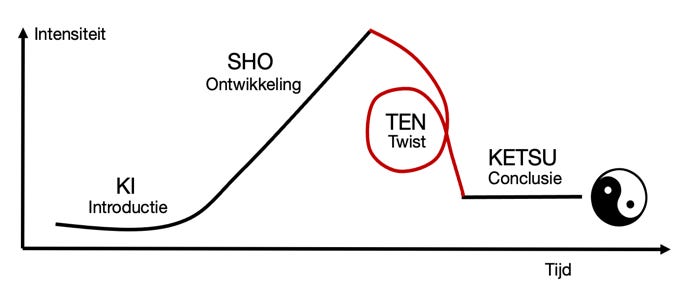 Dan ontstaat een mentaal gezonder verhaal. Daarom is het waardevol om beter te worden in deze verhaalvorm. Kishōtenketsu legt de focus op groei, emotie en relaties.